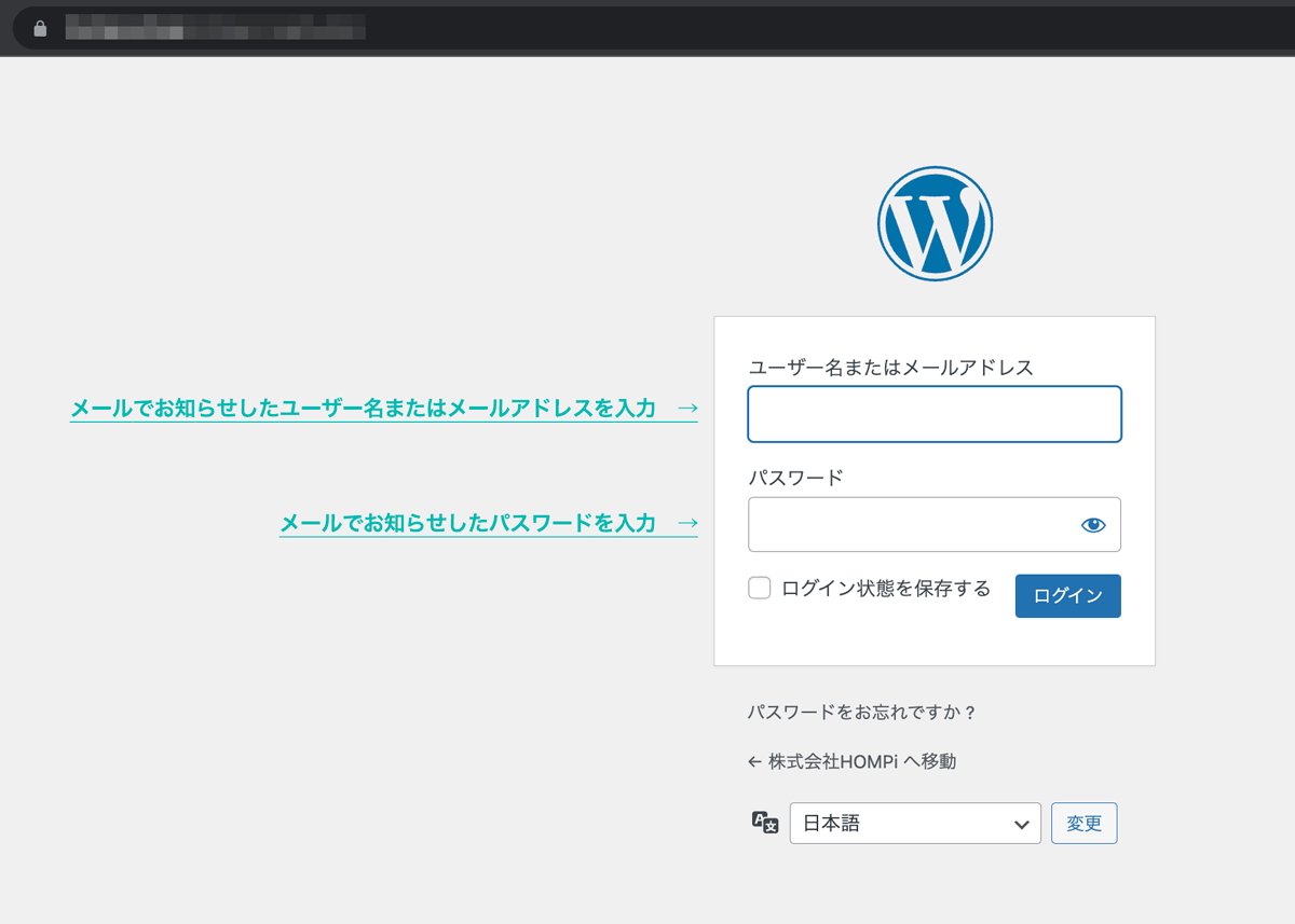 1.メールでお知らせした管理画面用URLにアクセスしてください