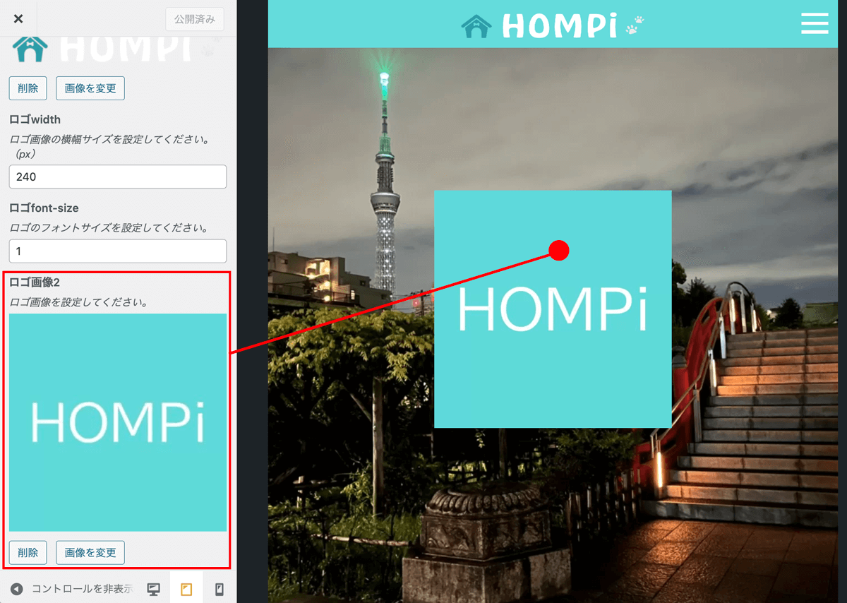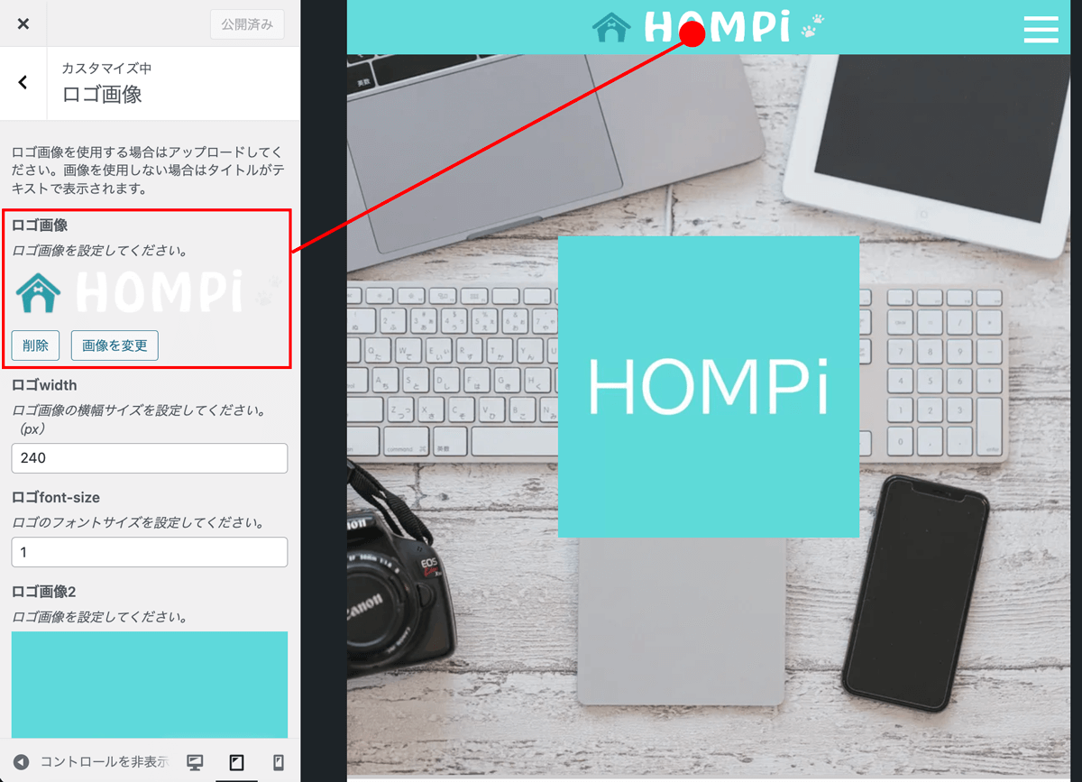 サイトのヘッダー部分に表示したいロゴ画像をアップロードしてください。
